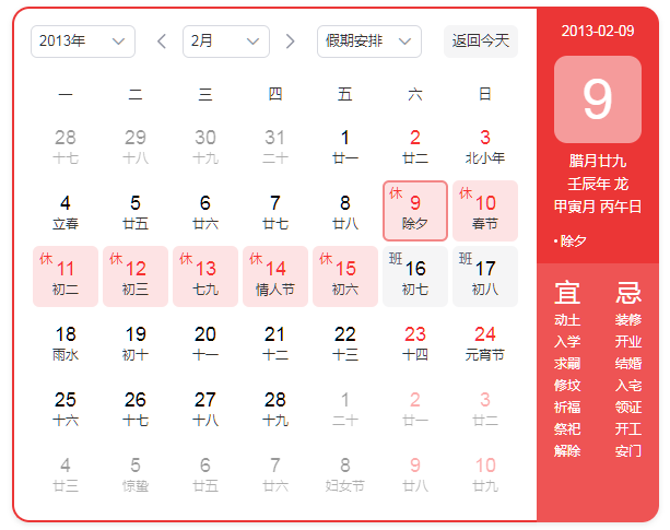 根據(jù)國務(wù)院辦公廳2013年放假安排,結(jié)合公司實際情況,經(jīng)公司研究決定,2013年春節(jié)放假具體安排如下: