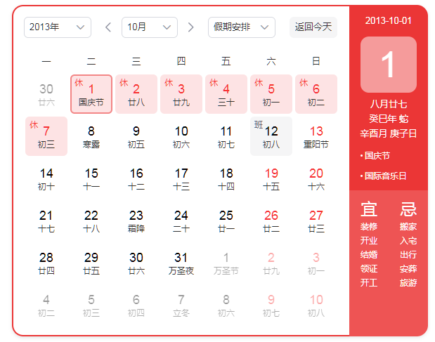 10月1日至7日放假調休,共7天。9月29日(星期日)、10月12日(星期六)上班。
