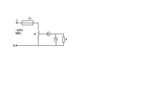 圖中,FU:熔斷器 A:交流電流表;B:調壓器;V:交流電壓表,測得的R值應接近R0計算值,允許有5%的誤差。